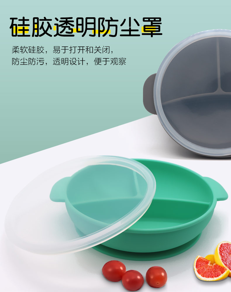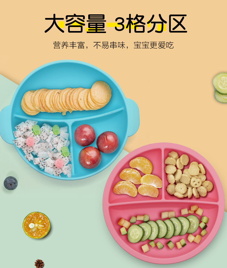 硅膠兒童餐具套裝 寶寶硅膠餐盤(pán) 一體式兒童餐具嬰幼兒輔食吸盤(pán)碗
