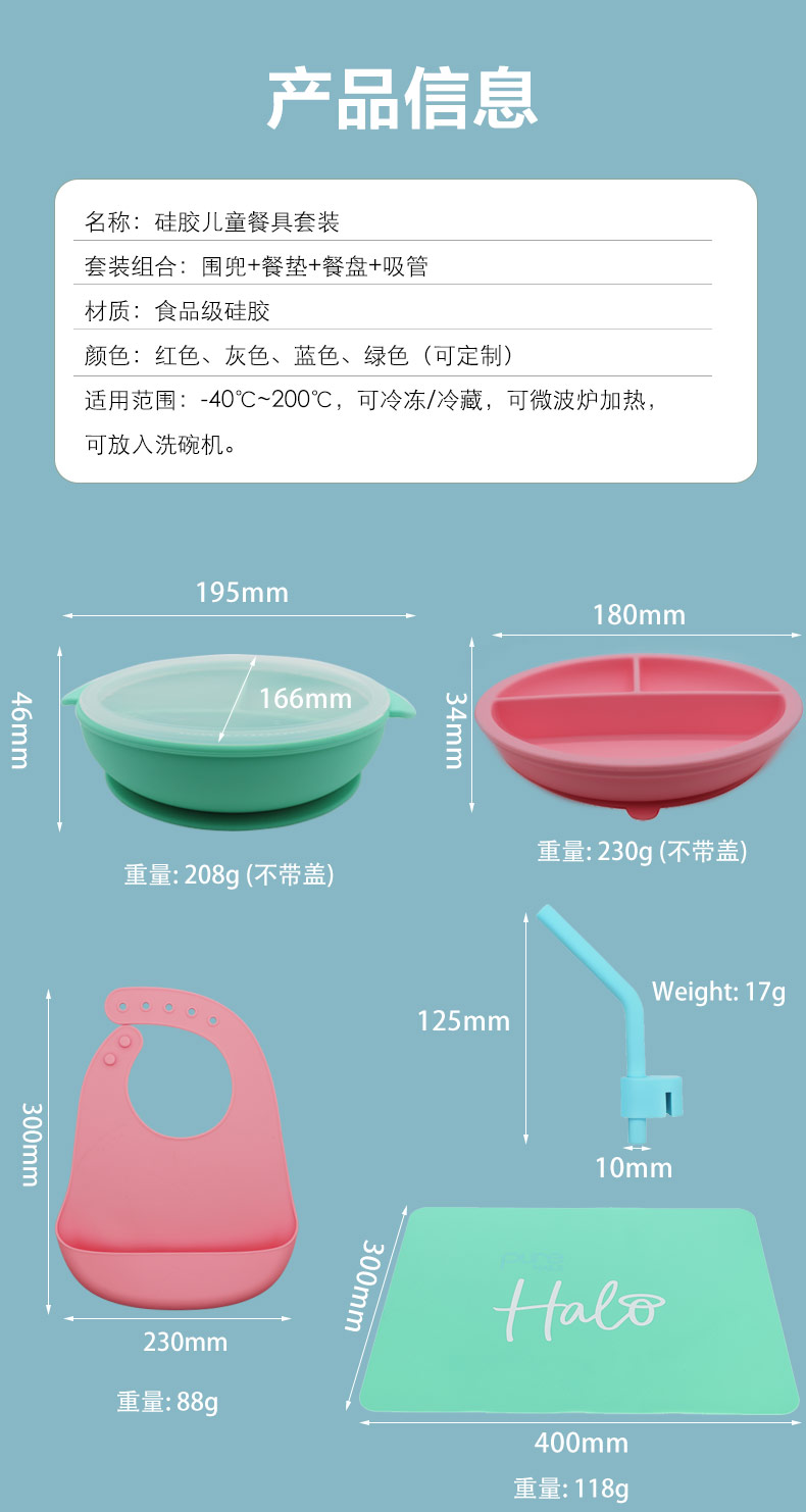 套裝組合:圍兜+餐墊+餐盤(pán)+吸管