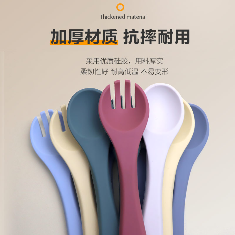 硅膠叉勺嬰兒訓(xùn)練叉勺食品級(jí)硅膠叉勺
