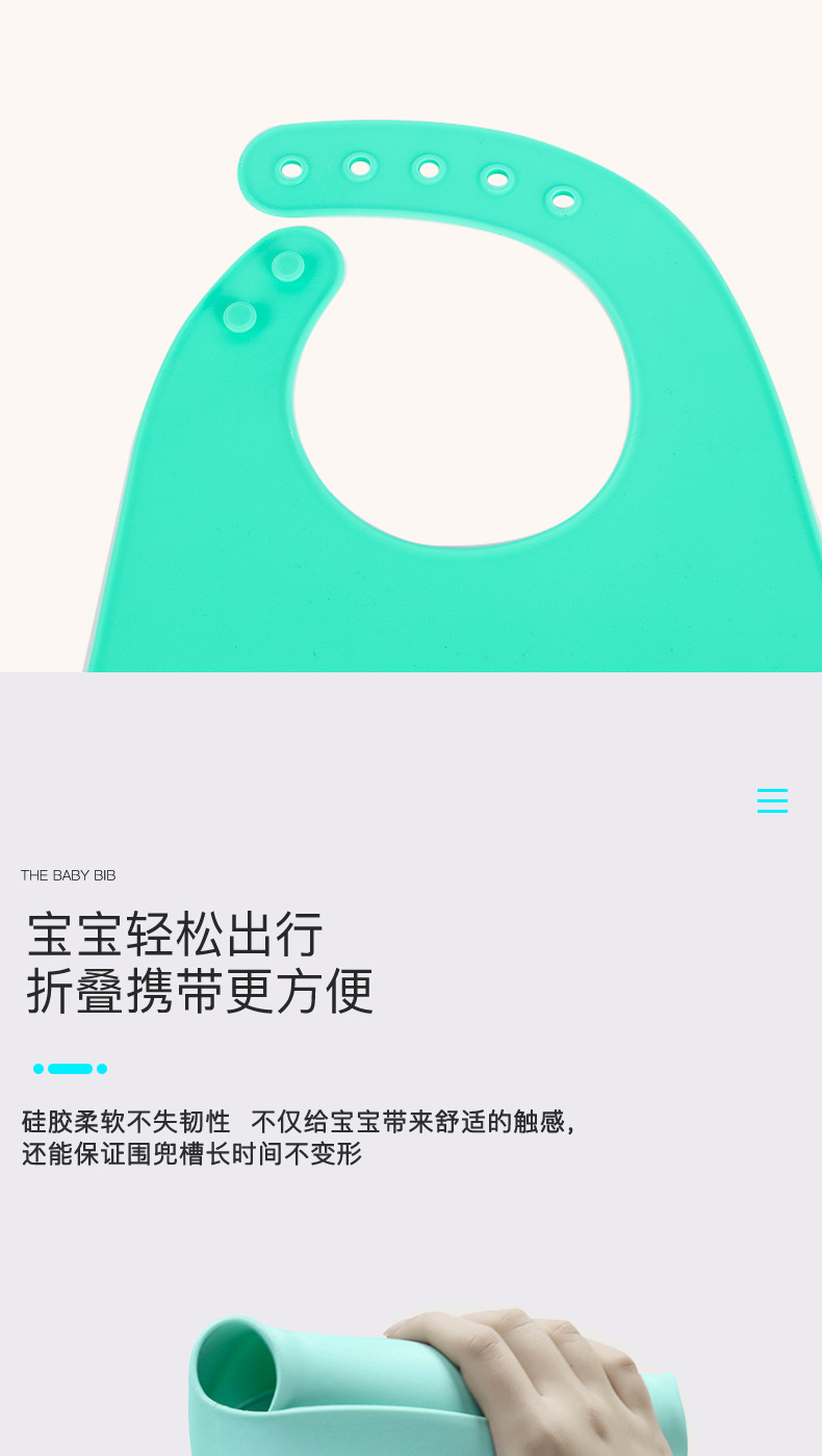 科泰利所生產(chǎn)的硅膠圍嘴兜,選用食品級環(huán)保原材料制作,材質(zhì)可以信賴,它由科泰利硅膠制品廠家經(jīng)過200多度高溫加工成型,耐溫防水防油,清潔方便,水沖即可,可以反復使用。而且硅膠圍兜現(xiàn)在普遍采用3D立體設(shè)計,凹槽可以輕松兜住食物,這樣的設(shè)計就是在存放的時候比棉質(zhì)占空間。此外硅膠除了作為圍嘴兜也一樣可以做其他嬰童硅膠制品。