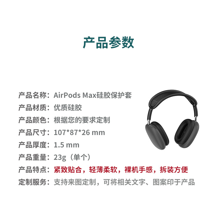 產(chǎn)品名稱: | 適合蘋果AirPods Max藍(lán)牙耳機硅膠保護(hù)套 |